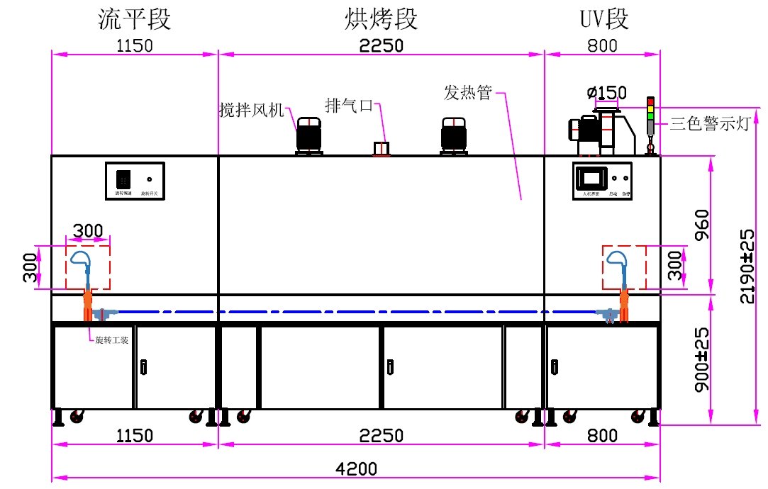 2、發(fā)熱管安裝在工件上方