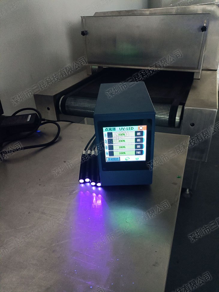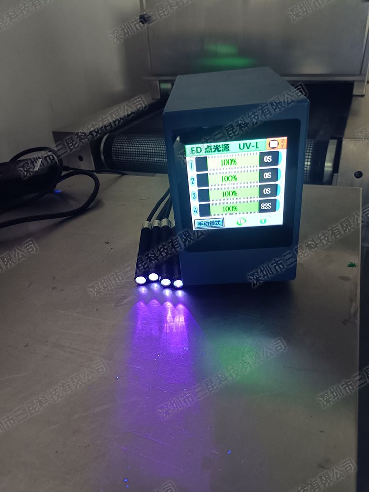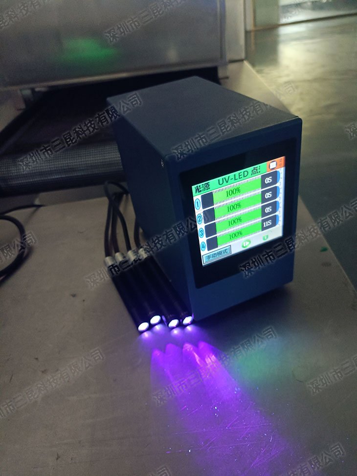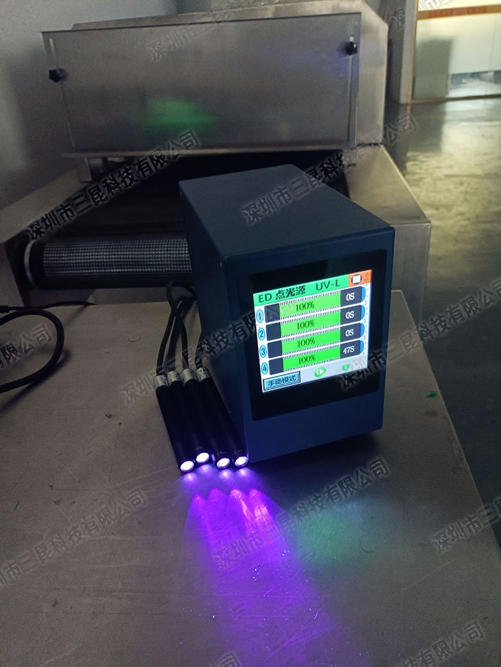 本設備采用365-405nm多波段UV-LED光源,支持4個獨立照射頭同步操作,光強達7000mW/cm2,適配膠水、油墨等快速固化。獨特風扇散熱設計確保光功率